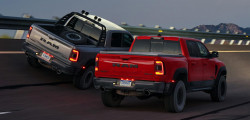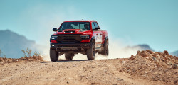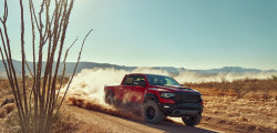 Dodge răspunde concurenților cu o versiune potentă, menită să-i facă zile grele lui F-150 Raptor. Conform spuselor producătorului, noul RAM 1500 TRX ”este cel mai sprinten, rapid și puternic pick-up de serie din lume”. Dacă ar fi să judecăm după echiparea de sub capotă, noul model nu este menit prafului sau muncii grele, ci, mai degrabă, blițului aparatelor.