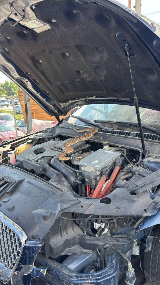 Șarpele a fost găsit sub capota automobilului, în timpul unei inspecții de rutină efectuate de proprietar. Precizăm, automobilul a fost importat din California.