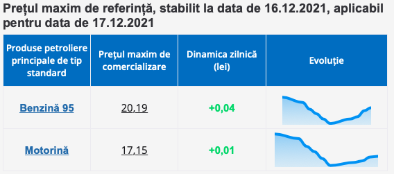 Potrivit informațiilor publicate astăzi de Agenție, benzina se scumpește cu 4 bani și se va vinde cu 20.19 lei, în timp ce costul motorinei crește cu 1 ban și se va comercializa cu 17.15 lei.