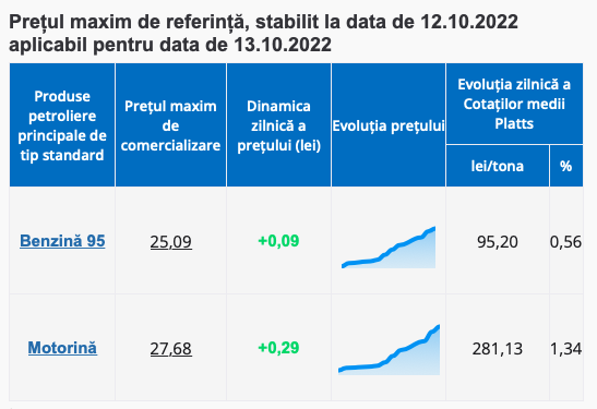 Pentru ziua de mâine, 13 octombrie, Agenția anunță sumpirea benzinei cu 9 bani, astfel că aceasta se va vinde cu maxim 25.09 lei per litru, dar și o creștere a costului motorinei cu 29 de bani, care se va comercializa cu cel mult 27.68 lei per litru!