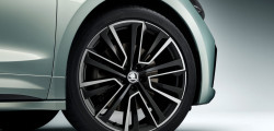 Standard, Enyaq iV oferă clienților faruri și stopuri LED, iar opțional sun disponibile blocurile optice LED Matrix. Tot aici se adaugă jantele de 18 inch, în timp ce celelalte versiuni vor fi livrate cu jante cu diametre care variază între 18 inch și 21 inch. În total, Skoda a pegătit opt variante de jante pentru noul EV.