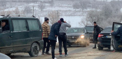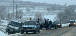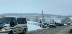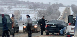 Nu vă putem spune exact dacă cel aflat la volanului MB Vito a pierdut controlul mașinii și s-a pomenit aruncat de pe șosea, sau s-a oprit pentru a admira natura. Cert este că fără implicarea unor conducători auto din trafic, repsonsabili, cum mai rar vezi, ar fi admirat peisajul de iarnă mult și bine.