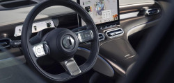 Interiorul este conceput pentru cinci persoane. Acesta primește un design minimalist și este de dominat de display-ul sistemului multimedia de 12.8 inch și instrumentarul de bord digital de 9.2 inch. Menționăm că sistemul multimedia dispune de o interfață grafică 3D și se bazează pe un program de inteligență artificială pentru comenzile vocale. Există, de asemenea, un head-up display. Circa 75 % din toate dispozitivele electronice primesc software actualizat "over the air".