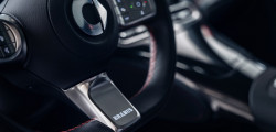 Scaunele sunt tapițate cu piele în combinație cu microfibră, iar volanul este îmbrăcat în alcantara. Nu în ultimul rând, pedalierul este confecționat din aluminiu.