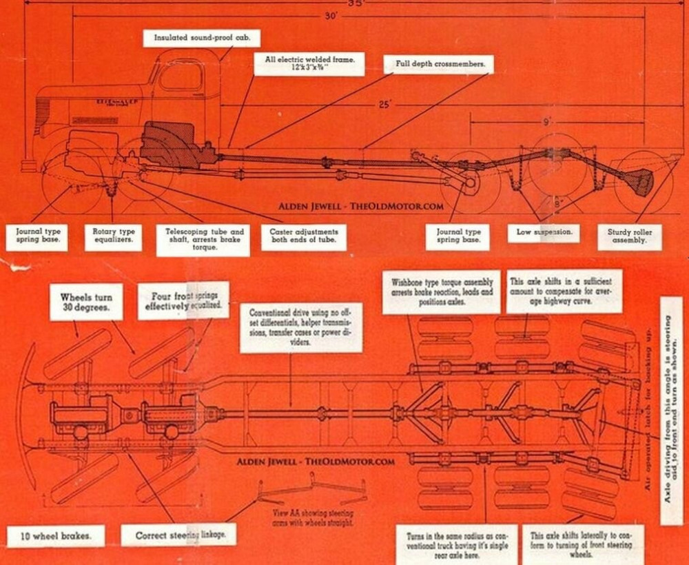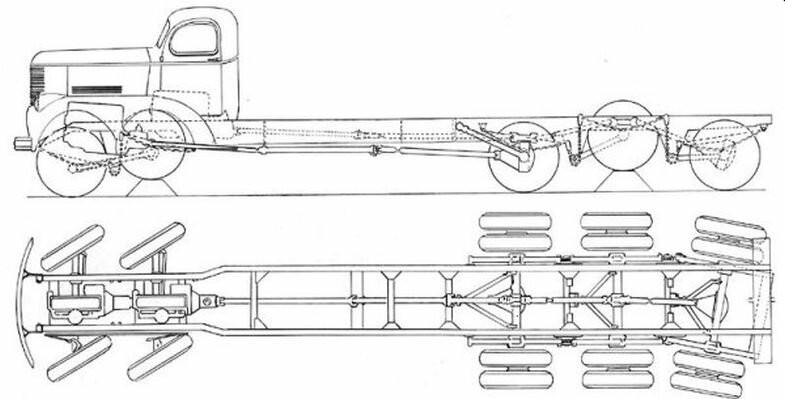 Motoarele în șase cilindri în linie erau produse de Chevrolet și erau capabile de câte 93 de cai putere fiecare. Prima unitate era instalată sub capota camionului, ia al doilea motor se ridica în spatele primului, aproape să intre în cabină. Acest lucru a necesitat o construcție specială a habitaclului, unde podeaua integra un tunel uriaș pe mijloc.