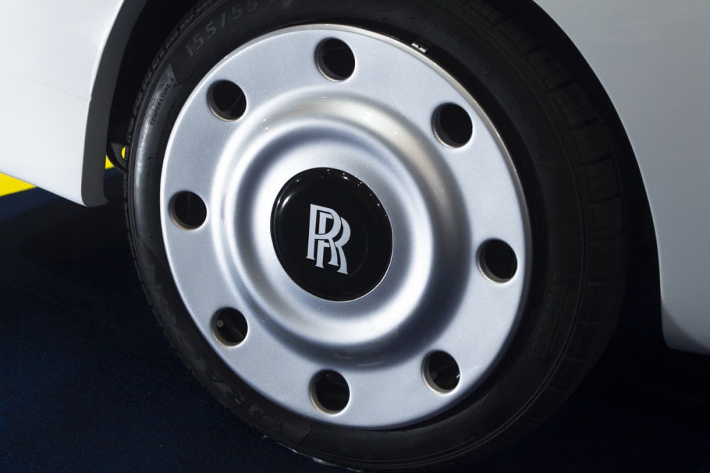 Aspectul exterior este completat de un set de jante de 14 inch cu capace neobișnuite, pe care sunt aplicate cele două litere legendare RR, adică Rolls-Royce.