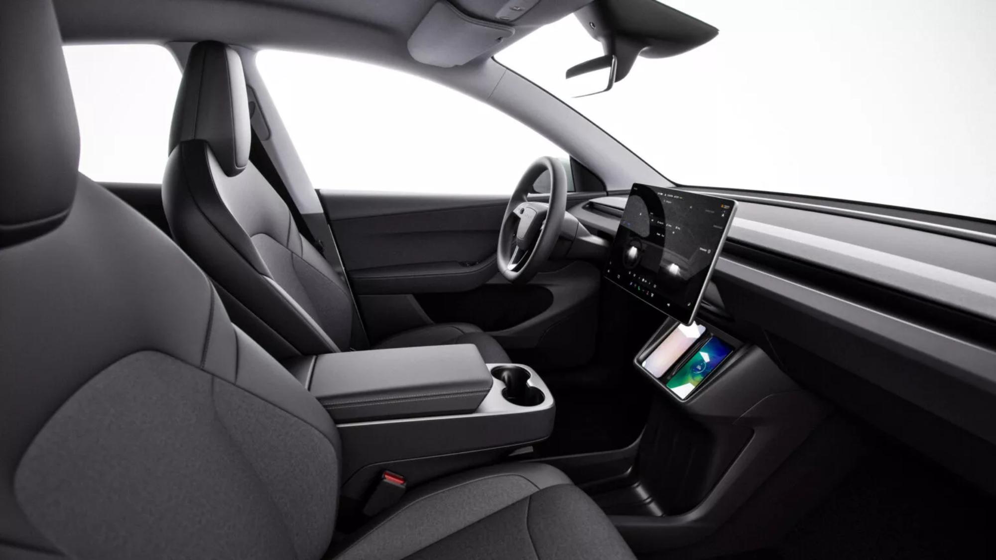 Pentru a menține un preț competitiv, Model Y Standard renunță la o serie de dotări premium. Interiorul este acum finisat cu materiale textile în locul pielii sintetice, iar sistemul audio nu include radio FM/AM. De asemenea, mașina nu dispune de iluminare ambientală, iar plafonul din sticlă nu mai este complet panoramic, fiind parțial acoperit cu material textil.