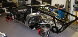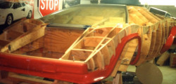Pentru început, bărbatu a confecționat un cadru din lemn după care a proiectat pe baza acestuia panouri de caroserie din aluminiu. La interior, Ken a sudat un roll cage din țevi, dar a folosit și câteva piese originale. Motorul care pune în mișcare replica este un V8 marca Ford.