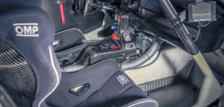 Ce ține de interior, scaunele simple au fost înlocuite cu altele, create special pentru curse. Iar dotările care nuu sunt necesare pe parcursul curselor, au fost eliminate din automobil. Scaunele din spate au fost și ele înlocuite, doar că de această dată cu un roll-cage. Pentru a scădea din greutatea totală a automobilului, bordul a fost confecționat din fibră de carbon.