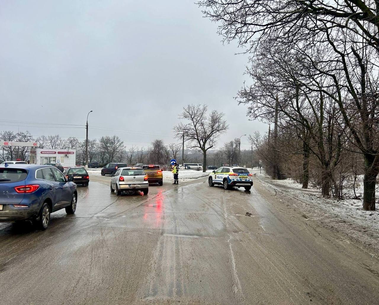 Situația, astăzi, este mult mai gravă, comparativ cu ziua de ieri. Din cauza poleiului, care a format gheață pe drumurile din țară, polițiștii au fost nevoiți să sisteze traficul rutier pe mai multe artere. Mai multe mașini rămân blocate sau derapează de pe traseu, iar pietonii, deși merg cu mare atenție, oricum se lunecă.