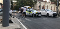 Un accident cu implicarea unei mașini a poliției a avut loc în această seară în centrul Chișinăului