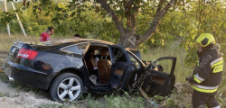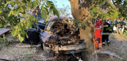 Un Audi s-a izbit violent într-un arbore! Șoferul a decedat, după ce a fost descarcerat din mașină