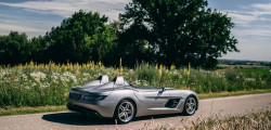 Timp de zece ani, exemplrarul din imagiile de mai jos și-a schimbat de trei ori proprietarii. Pentru prima dată, supercarul a fost livrat în Luxemburg, al doilea proprietar a fost un colecționar din Orientul Mijlociu, iar actualul stăpân al acestui SLR McLaren Stirling Moss îl vinde în Germania. În 2012, mașina a participat la cursa Mille Miglia, însă parcursul total nu depășește 8.500 de kilometri.