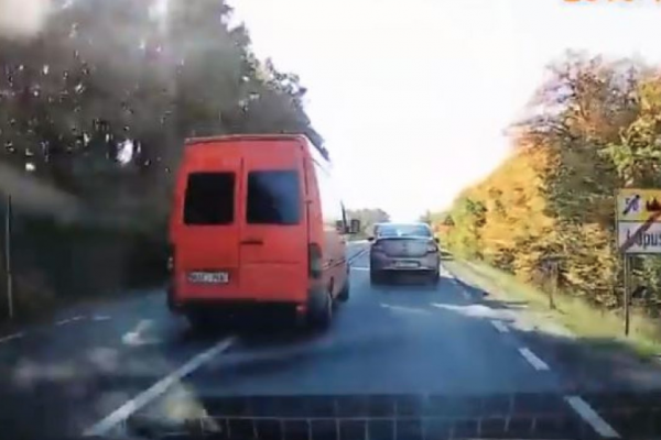 Incidentul a avut loc pe Drumul Național 1C, la ieșirea din localitatea Lăpușel. Pe imaginile filmate de un șofer cu camera de bord montată în mașină, se poate abserva cum șoferul dubei roșii, cu numere de înmatriculare din Republica Moldova, se angajează într-o depășire fără a se asigura, deși carosabilul era marcat cu linie continuă și forțează insistent depășirea!