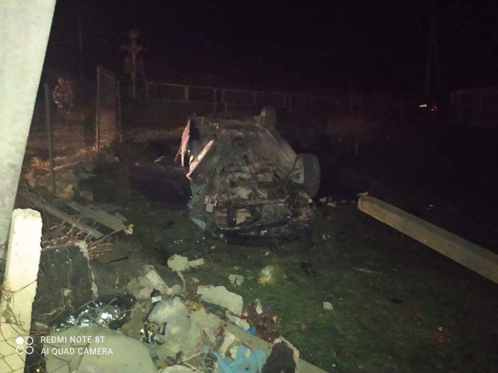 Un Opel a ajuns răsturnat în curtea unei gospodării! Șoferul a fugit de la fața locului, în timp ce pasagera sa a decedat