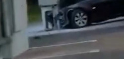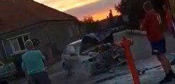 BMW-ul s-a ales cu partea din față șifonată considerabil după impactul cu stâlpul. În imagini observăm că airbag-urile au fost declanșate, astfel că acum mașina va necesita lucrări de reparații costisitoare, sau v fi declarată daună totală.