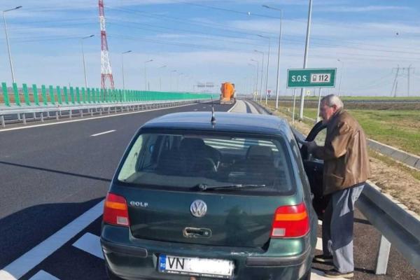Un VolkswagenW Golf, condus de un bărbat în vârstă de 75 de ani, din Vrancea, a circulat pe contrasens pe autostrada A7, pe banda 2, fiind depistat și oprit în zona km 160.
