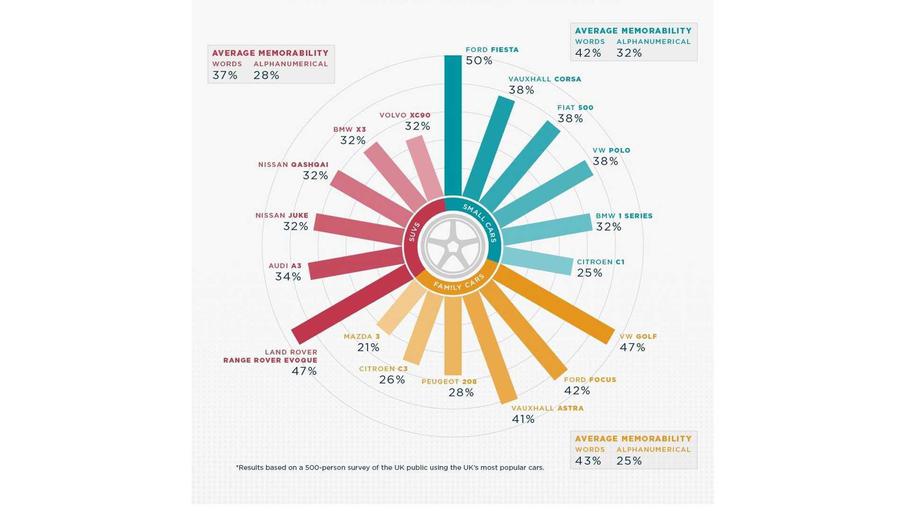Compania britanică de leasing Vanarama a efectuat un studiu în care au fost implicate 500 de persoane, pentru a afla ce nume de modele de mașini sunt memorate mai bine, cele care reprezintă anumite cuvinte sau cele cu indici alfanumerici. Pentru interviu, britanicii au folosit 253 de modele de automobile a 45 celor mai populare branduri din întreaga lume.
