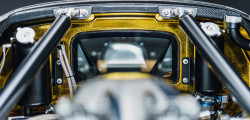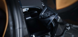 Automobilul are o masă de doar 1.360 kg, dintre care motorul cântărește 280 kg, iar caroseria ultra-ușoară din fibră de carbon doar 86 kg. Jantele reduc și ele masa mașinii, fiind realizate din aluminiu și ”încălțate” în anvelope Michelin Pilor Cup Sport 2, dimensionate la 265/35 ZR19 pe față, și 345/30 ZR20 pe spate.
