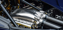 Pe parcursul dezvoltării modelului, unele elemente nu s-au materializat în versiunea de serie. Este și cazul motorului, cea mai importantă componentă al întregului ansamblu. În locul motorului V8 de 7.4 litri volum ce dezvolta 1.600 CP și 1.762 Nm, în versiunea de serie și-a făcut loc un propulsor asamblat manual, unul de 6.6 litri volum, V8, mai performant decât precedentul ce oferă 1.842 CP și 1.617 Nm. Blocul motor este turnat din fontă, fiind echipat cu două turbocompresoare realizate din titan. Agregatul e conectat cu o cutie de viteze robotizată cu șapte rapoarte, un singur ambreiaj și acționare prin padele.