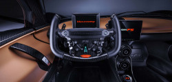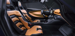 Interiorul modelului oferă un aspect futurist. Cel mai evident element este volanul de curse al mașinii, realizat din fibră de carbon, fiind printre altele și multifuncțional, iar butoanele acestuia răspund de o serie de comenzi, inclusiv pentru acționarea ștergătoarelor și indicatoarelor de direcție. Forma acestuia e condiționată de practicabilitate, partea superioară a fost eliminată pentru a îmbunătăți vizibilitatea.