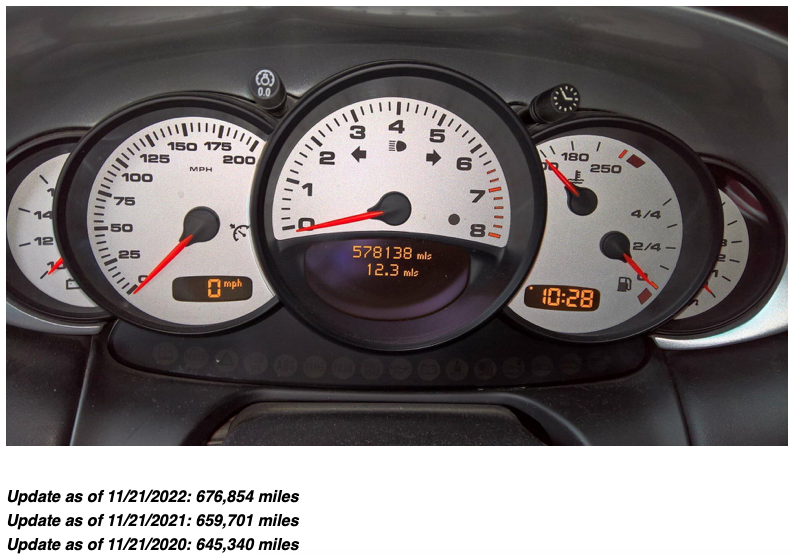 Angajații atelierului de tuning Apex Motorsport au povestit pe rețelele sale de socializare istorioara unui Porsche 911 Turbo deosebit. Proprietarul mașinii sport vine în mod regulat la tuneri pentru a o deservi, iar în timpul ultimei inspecții odometrul mașinii a înregistrat parcursul de 676.854 mile, echivaletul a 1.089.290 de kilometri!