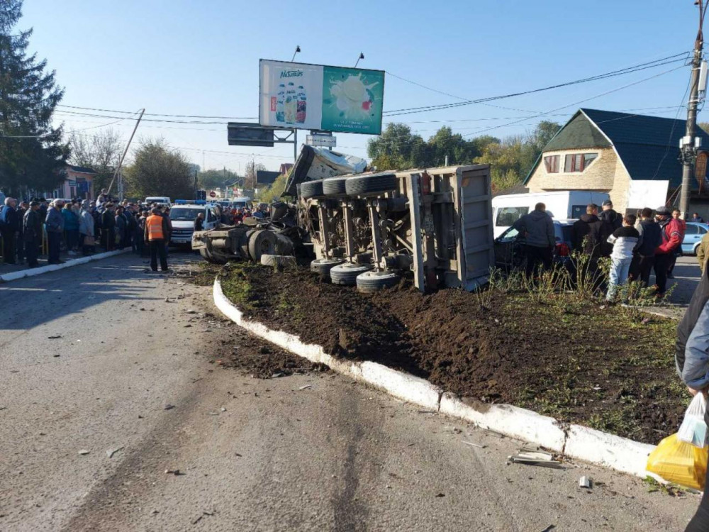 (VIDEO) Accident cumplit la Briceni! Mai multe mașini au fost avariate după ce un TIR a intrat violent peste ele