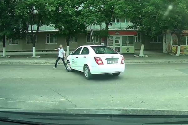 În imaginile video postate de StopHam Moldova pe pagina sa de Facebook, vedem cum un Chevrolet Aveo de culoare albă, care ar aparține unei companii de creditare, inițial staționează în intersecție așteptând să vireze la stânga, după care accelerează. În acest timp un pieton de vizavi începe să traverseze strada, iar șoferul nu-i cedează trecerea, dar din contra mărește viteza și îl lovește din plin.