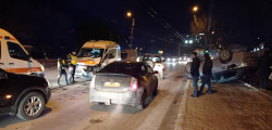 Un accident în care au fost implicate o ambulanță și un Mitsubishi Outlander s-a produs în această seară la intersecția străzilor Grenoble și Costiujeni din Chișinău. În urma ciocnirii, SUV-ul s-a inversat pe trotuarul adiacent.