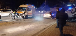 (VIDEO) O ambulanță și un Mitsubishi s-au ciocnit în această seară în Chișinău