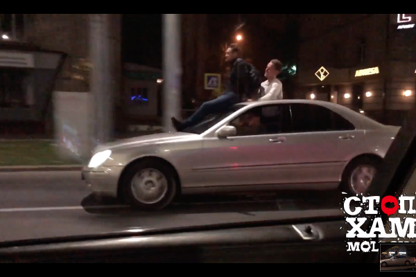 Imaginile video au fost postate pe grupul StopHam Moldova de pe rețeaua de socializare Facebook. Din imagini observăm doi tineri unul ieșit pe trapa mașinii iar altul stând pe parbriz și sprijinindu-se cu picioarele de capota automobilului. Între timp șoferul Mercedes-ului conducea cu viteză chiar în centrul capitalei, pe bulevardul Ștefan cel Mare.