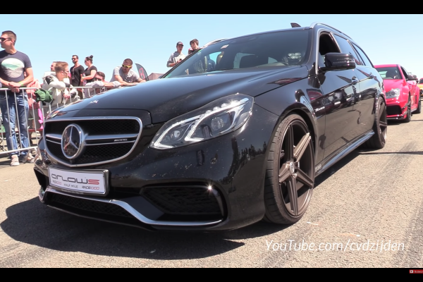 Un exemplar Mercedes-Benz E-Class Estate care de majoritatea populației este socotit drept un automobil perfect pentru familie, a făcut spectacol la un eveniment de drag race din Germania. Vehiculul are la bază versiunea de performanta E63 AMG, care la rândul său a primit o serie de îmbunătățiri, astfel ca puterea motorului V8 să crească până la 900 de cai putere.