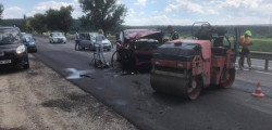 Viteza excesivă și lipsa de atenție i-au adus ghinion șoferiței unui Porsche Cayenne, care s-a izbit într-un compactor de asfalt angajat în reparația drumului e traseul Chișinău-Orhei.