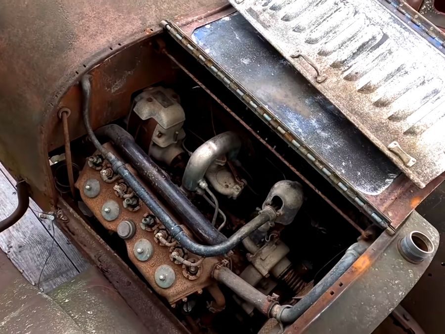 Aceștia au găsit un Cadillac V8 din 1917, care zace nemișcat deja de 93 de ani! Motorul se ascunde sub rămășițele ruginite ale caroseriei, propulsorul și transmisia fiind aproape tot ceea ce a mai rămas din întreaga mașină. Cadillac L-head V8 de 5.1 litri volum era cânda capabil să dezvolte de la 70 la 80 de cai putere. Designul de modă veche a motorului nu presupune o chiulasă așa cum ne-am obișnuit, aici pistonul poate fi ușor scos din blocul cilindrilor în întregime.