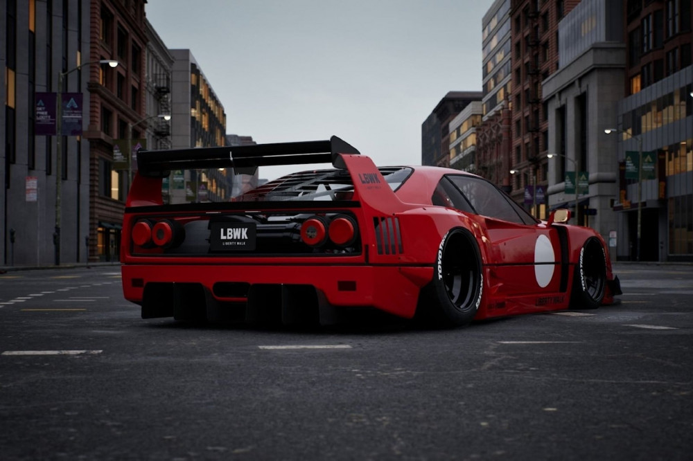 Între timp, cei de la Liberty Walk au decis să meargă pe altă cale și au transformat radical caroseria unui exemplar F40. Pe automobil a fost montat un kit wide body, un eleron și alte jante. Potrivit lui Kato Wataru, fondatorul atelierului de tuning, acesta este primul și unicul exemplar Ferrari F40 modificat în acest fel. Apropo, Ferrari a lansat doar 1.311 de unități ale lui F40.