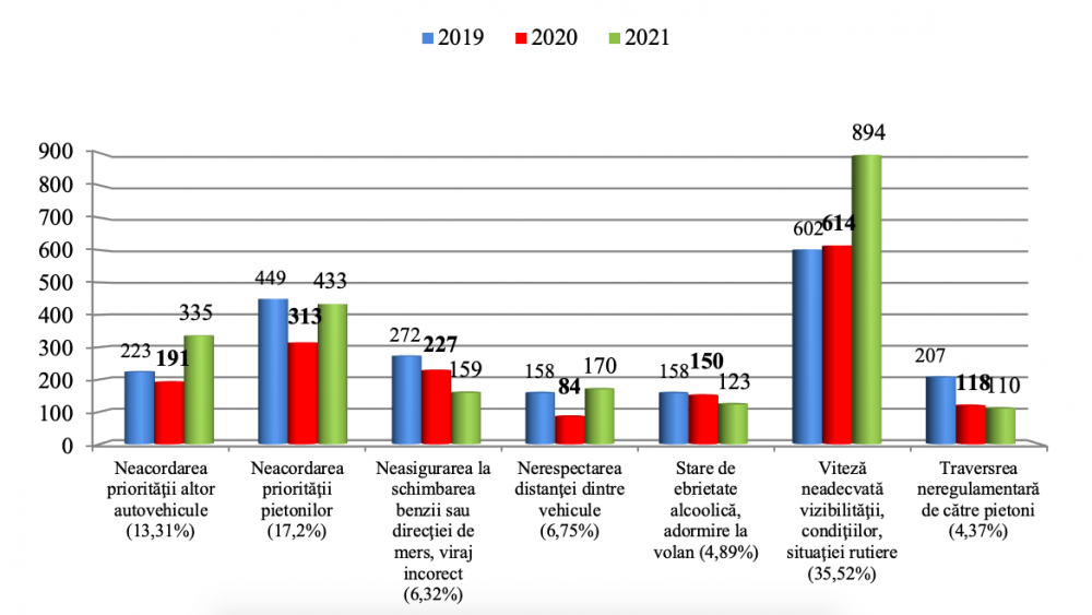35,52% din numărul total al accidentelor înregistrate în anul 2021, au fost cauzate de viteza excesivă. În urma acestora, 134 de persoane au decedat, iar 1.028 au fost traumatizate.