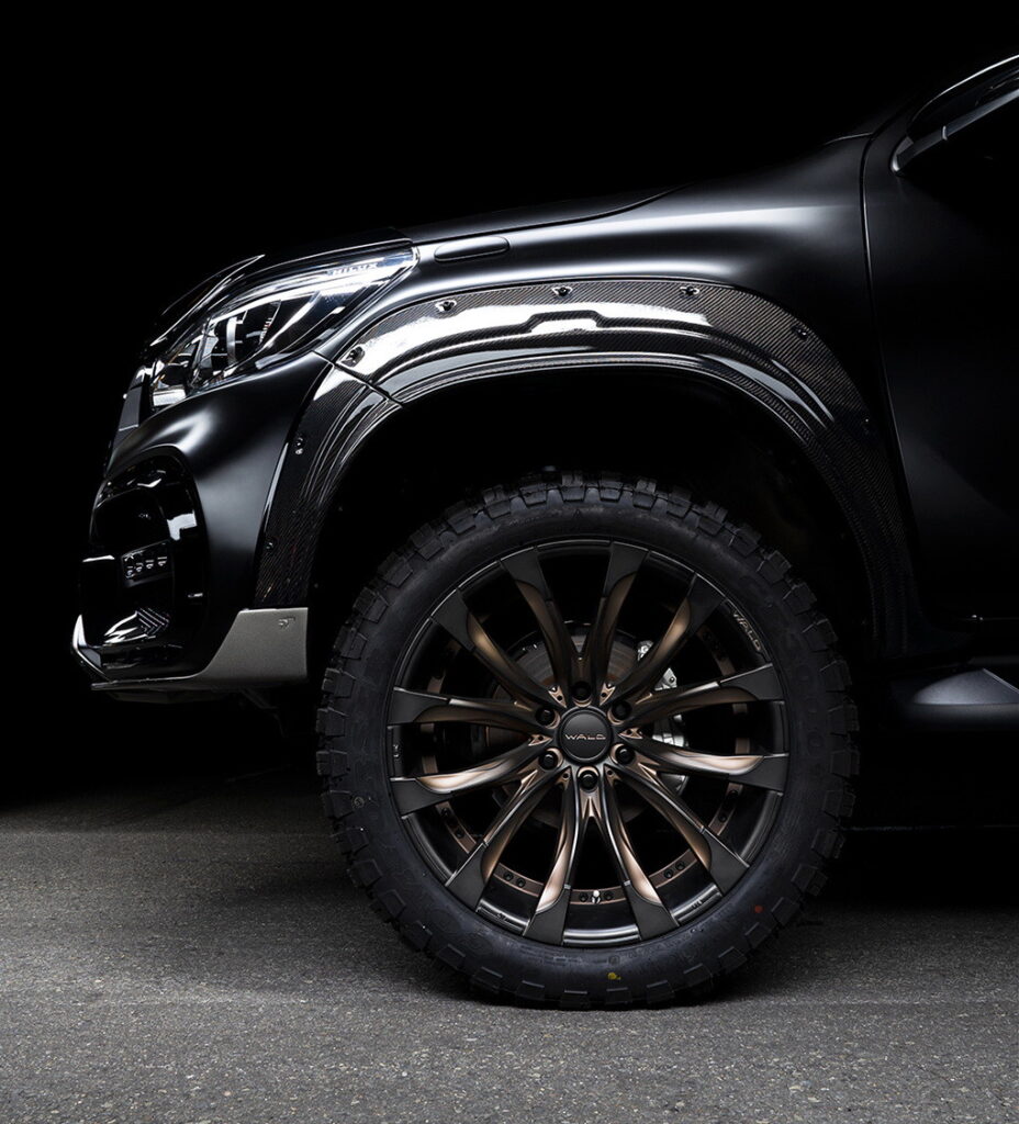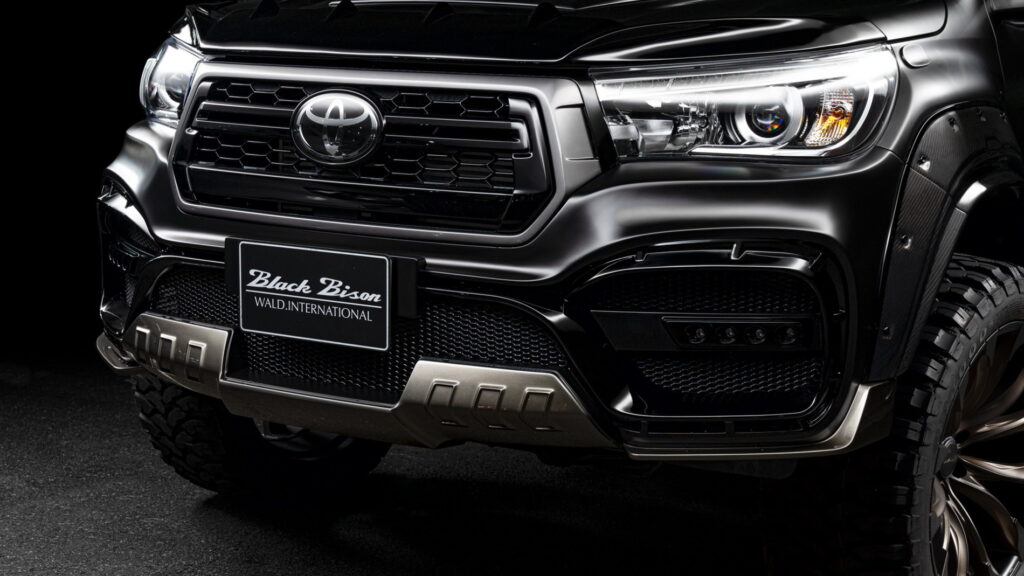 Așadar, cei de la Wald International au luat un Hilux, au aplicat designul împrumutat din seriile Black Bison, iar ca urmare au dat naștere unei rețete noi, Sports Line Black Bison Edition. Aceasta include întâi de toate un lift kit (kit de înălțare) de 55 mm, jante de 22 de inch și elemente de exterior unicate.