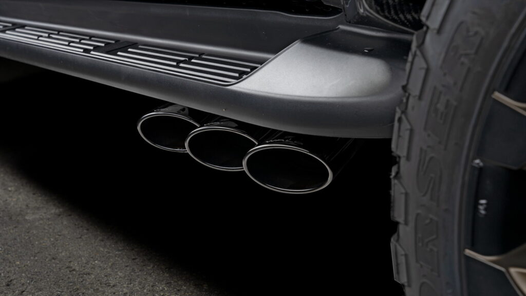 Printre ele se numără bara față, prizele de aer pe capotă, lumini auxiliare LED, sistem de evacuare cu trei finale pe lateral, aripi evazate și o vopsea de nuanță neagră cu un aspect mai special.
