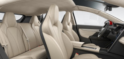 Interiorul vine echipat cu patru airbag-uri, sistem de climatizare, un ecran multimedia de 15.6 inci, dotat cu acces internet, Bluetooth și sistem de navigare. Un tablou de bord digital de 12.3 inci reflectă parametri mașinii. Scaunele, dar și alte elemente sunt realizate din piele perforată.