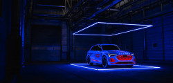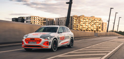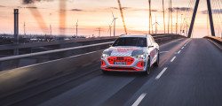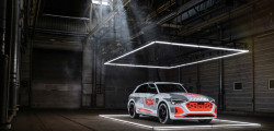 Constructorul din Ingolstadt a publicat primele imagini oficiale cu prototipul Audi e-tron facelift. Modelul este vopsită în culori speciale și va fi prezentă la evenimentul E-Cannonball în orașul Hamburg.