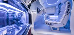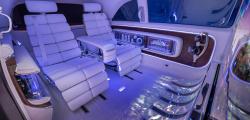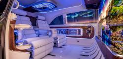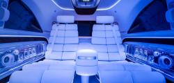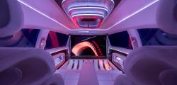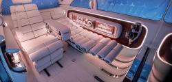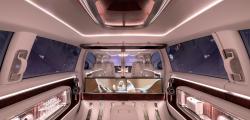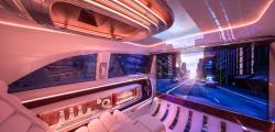 Dotările de lux continuă cu scaune reglabile electric, o sticlă de parfum integrată în spațiul pasagerilor și chiar un set de șah inclus în dotarea conceptului.