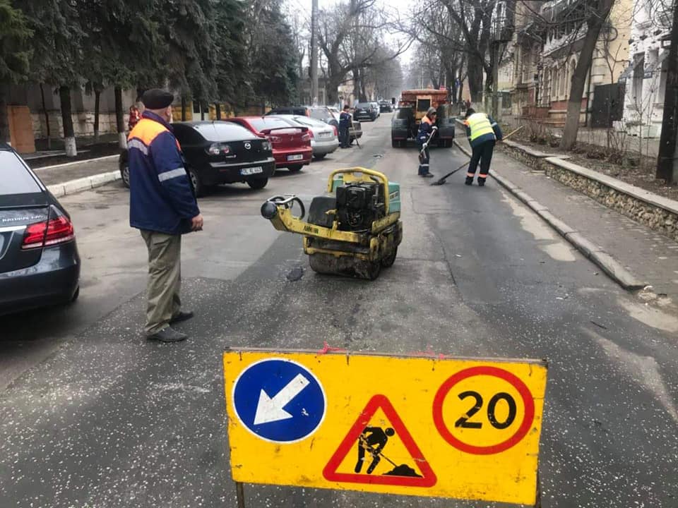 În ziua de joi, muncitorii au intervenit cu beton asfaltic rece pe cîteva străzi din sectoarele Buiucani, Râşcani şi Ciocana.