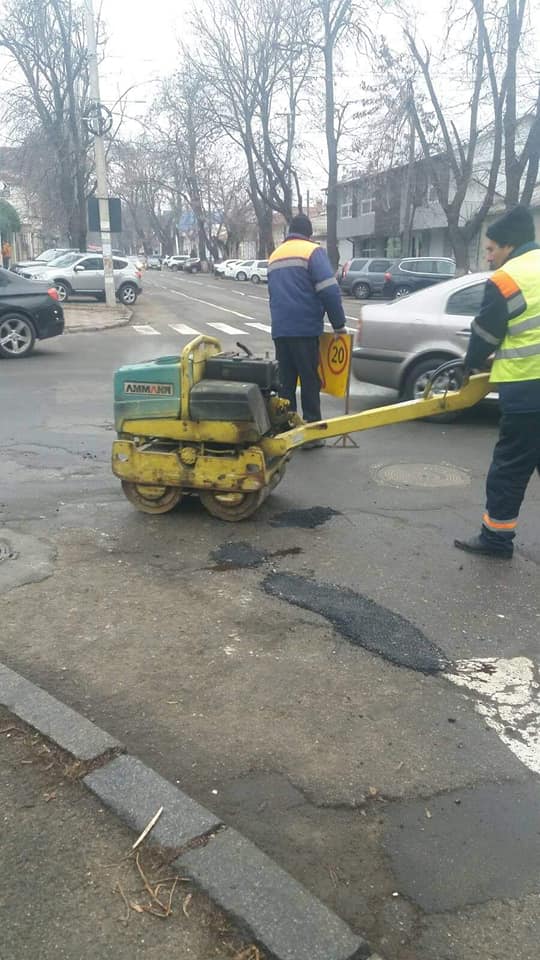 Zilnic, pentru lucrările de plombare a străzilor, sunt antrenate 12 unităţi de tehnică şi 50 de muncitori.”