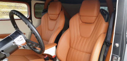 Provocările nu se opresc aici! Au fost utilizate axe custom din America. Motorul de la V8 Chevrolet Performance similar celor de pe Cadillac Escalade sau Chevrolet Corvette acordat cu o cutie automată în 6 trepte oferă în jur de 535 cai. Interiorul original prezintă o combinație a mai multor epoci, unde modernul se suplinește cu influențe retro. Nu vă lăsați păcăliți! Interiorul e dotat cu un ecran touch screen, condiționer și Bluetooth. Realizat în culori calde, cu scaune de piele, elementele se îmbină armonios.