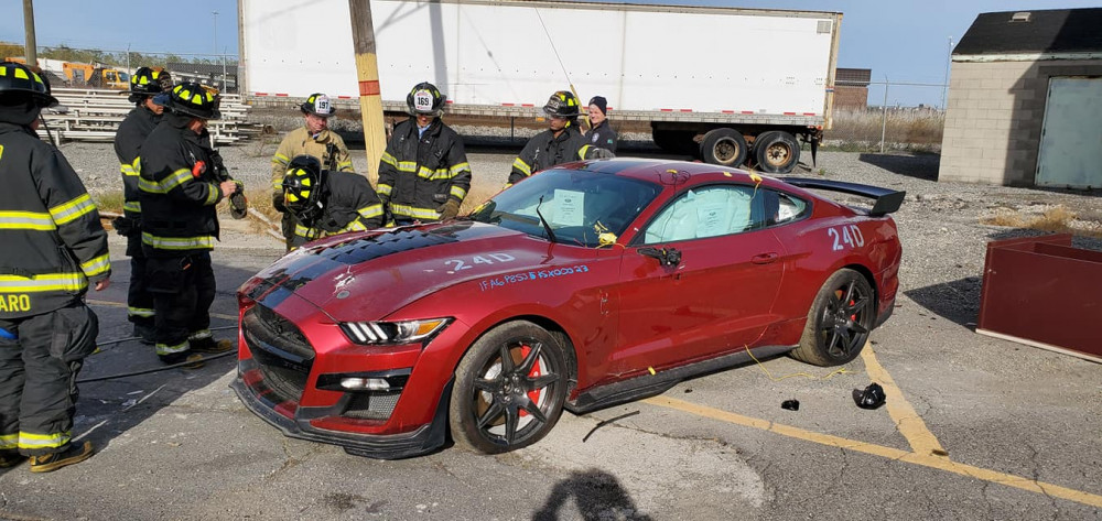 “Săptămâna aceasta ne-am antrenat pentru intervenții de descarcerare. Cuinimile frânte am fost nevoiți să tăiem oprototipul acestui Ford Shelby Cobra GT din 2020”, au scris pompierii în postare.