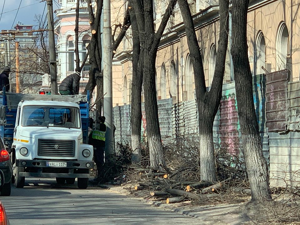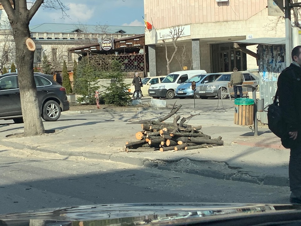 Dacă ați ales să vă de plasați pe str București din capitală, aflați că va trebui să aveți puțină răbdare. Angajații municipali s-au apucat de curățat copacii și crengile uscate.