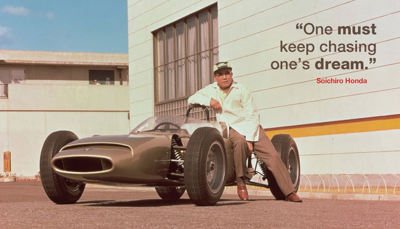 Nu vă zic de unde m-am inspirat - riscați să rămâneți blocați și voi cu ochii în ecrane, pentru cel puțin trei ore, așa că vin cu un rezumat cât se poate de scurt. Soichiro Honda, omul care a stat în spatele acestei companii japoneze producătoare de motociclete și mașini, este cheia la tot ce a adus faimă brandului. Și nu pentru că ar fi construit un imperiu, un gigant, cum a ajuns de exemplu Toyota, ci pentru că a dat viață celei mai inovatoare companii auto din lume! Soichiro avea puterea de a visa, chiar și în cele mai grele timpuri. The Power of Dreams, este și moto-ul companiei.
