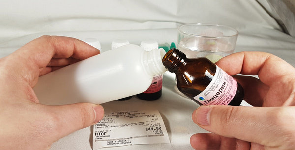 Pentru a realiza soluția salvatoare e necesară amestecarea într-un vas a apei și glicerinei lichide în proporții egale de 1:1 și agitarea conținutului pentru obținerea unei soluții omogene. Atât de simplu!